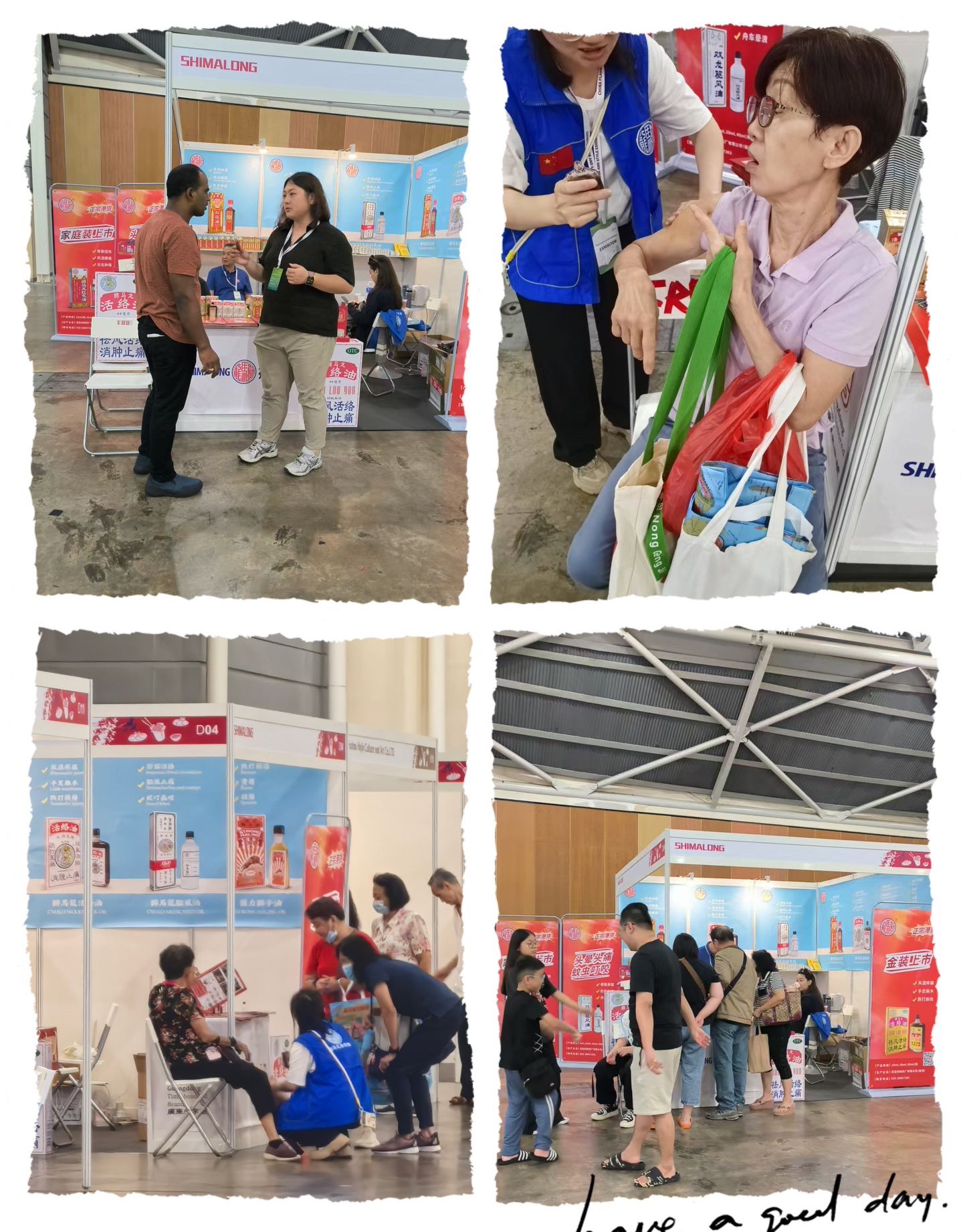展會期間,獅馬龍開展了藥油體驗,為遠道而來的海外參會嘉賓/消費者緩解因舟車勞頓、會務繁忙等原因引起的各種酸痛不適,獅馬龍藥油因此也獲得現場體驗者贊不絕口好評!也吸引了眾多遊客來采購作為旅遊/居家伴手禮!